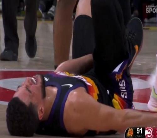 雪上加霜,布克90度崴脚伤退太阳一场伤俩主力,离场前三节就得31分
